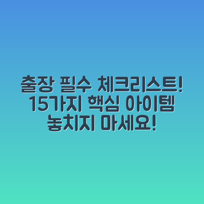 출장 십오야를 계획할 때에는 필수 체크리스트와 선택 항목을 구분하는 것이 중요합니다. 이 가이드를 통해 준비하는 과정을 단계별로 알아보겠습니다.